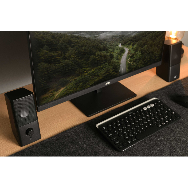 Надійна акустична система чорного кольору для комп’ютерів і ноутбуків у преміальному дизайні. 2 динаміки 2ʺ загальною потужністю 6 Вт дарують чудове стереозвучання на всіх рівнях гучності. 2E PCS202 не потребує додаткового ПЗ для роботи, живлення відбувається через рознім USB. Працює в частотному діапазоні 100 – 20 000 Гц.