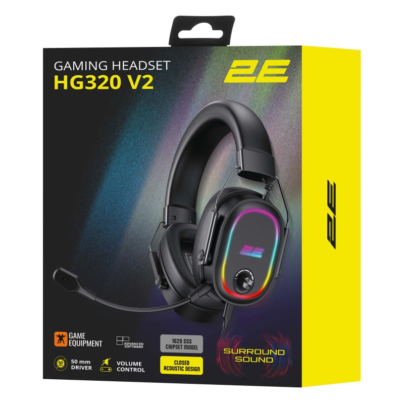 Гарнітура ігрова 2E GAMING HG320 V2, 7.1, USB-A, RGB, 2м, чорний