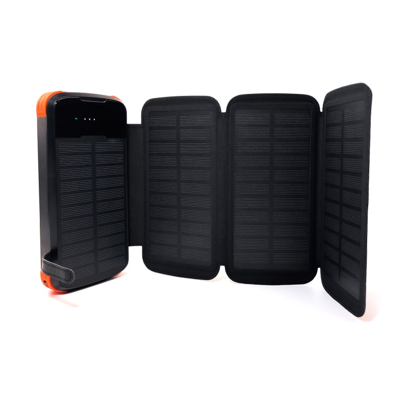 Mibrand EXTREM 20000mAh solar folding 2 lights — багатофункціональний пауербанк на 20 000 mAh із вбудованими USB-C, Micro та Lightning кабелями, а також вбудованою сонячною панеллю, що робить його по-справжньому незамінним джерелом живлення. Підходить для мандрівок, походів, кемпінгу, ділових поїздок.Сонячний блок живлення із 4 унікальними складними сонячними модулями, поєднання яких забезпечує швидку зарядку в порівнянні з іншими окремими сонячними блоками живлення. Ідеально підходить як вуличне джерело аварійного живлення.Пауербанк Mibrand EXTREM 20000mAh solar folding 2 lights обладнаний наступними портами:- вхід Micro-USB: 5V/2A, 9V/2,1A, 12V/1,5A;