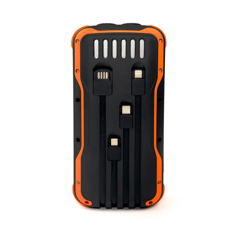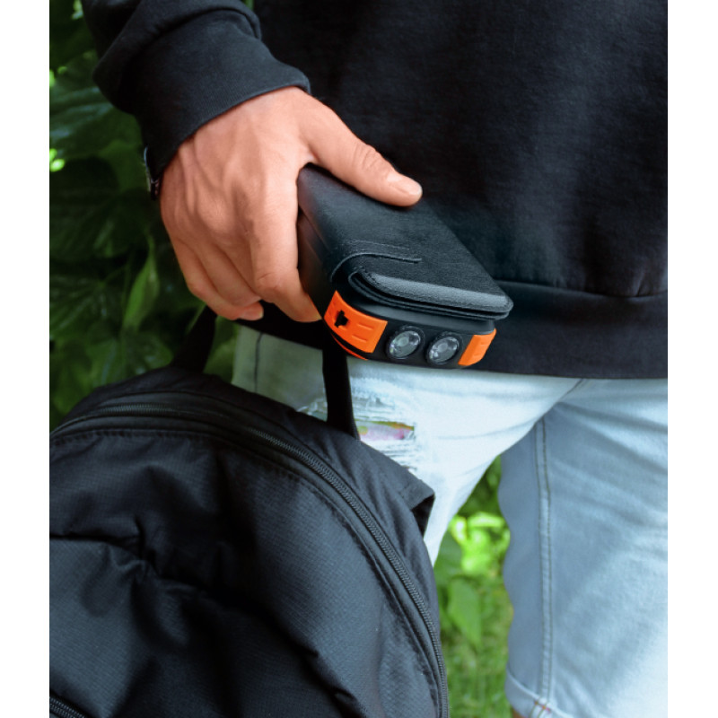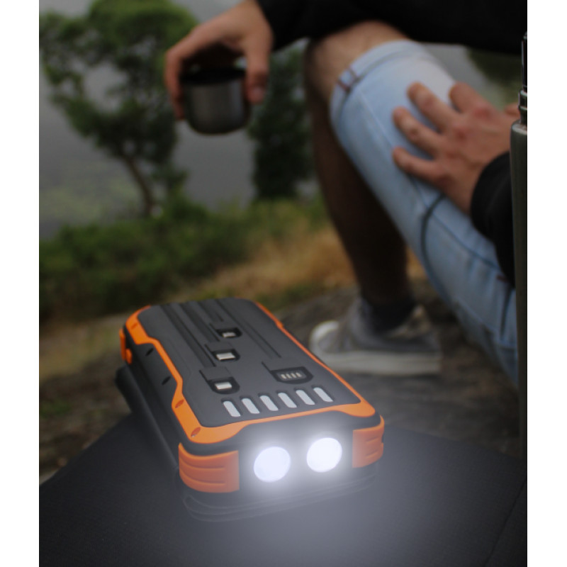- кабель Lightning: 5V/2,1A.Power bank має також вбудований подвійний ліхтарик, потужністю 3 W кожен. Пристрій призначений для кемпінгу, походів, риболовлі та інших заходів на природі.Можливість зарядки від сонця за відсутності розетки робить пауербанк Mibrand EXTREM 20000mAh справді незамінним джерелом живлення у складних умовах використання.