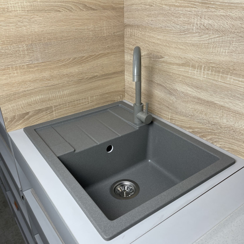 Кухонний набір Adamant Anila поєднує мийну з міцного штучного мінерального матеріалу та змішувач у сучасному дизайні. Мийка виготовлена у прямокутній формі з крилом та має зручну основну чашу для щоденного використання. Матеріал стійкий до високих температур, царапин та впливу побутової хімії. Змішувач доповнює комплект, що забезпечує комфортне регулювання води та плавну роботу. Набір створінь для тих, хто цінує практичність, довговічність та приємну естетику на кухні.