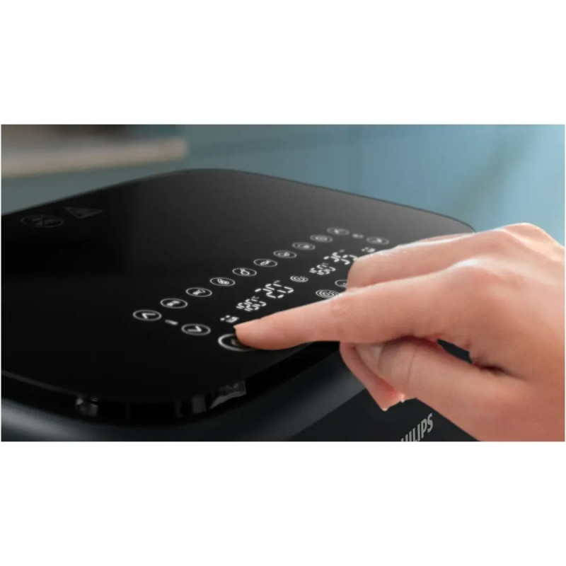 Опис Аерофритюрниця Philips Series 3000 NA351/00 подвійна безмасляна фритюрниця, цифровий дисплей, 8 попередньо встановлених режимів, 9 літрів, 2750 Вт, чорний колір