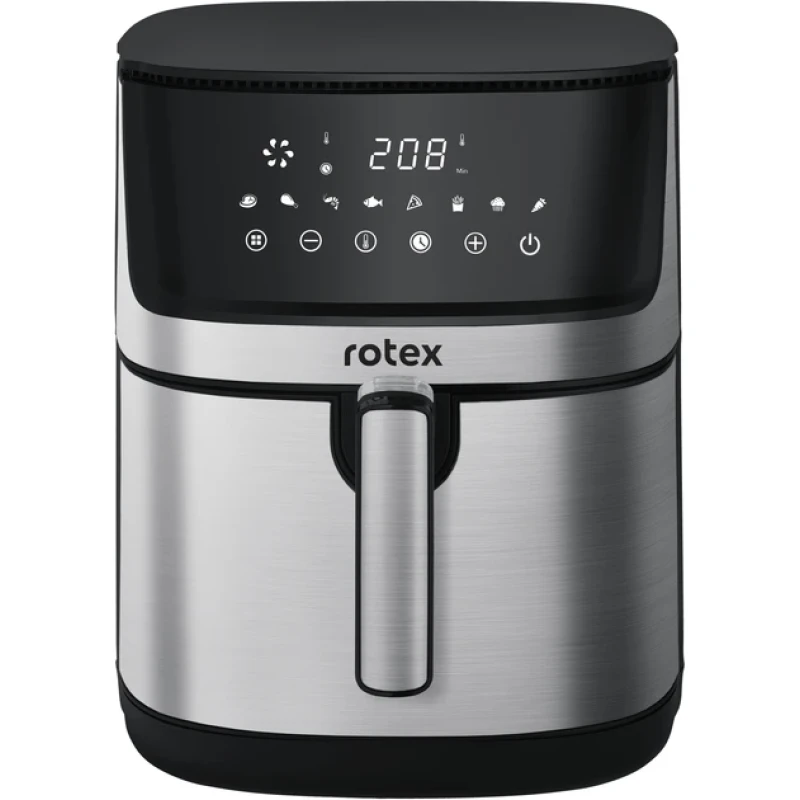 Аерогриль Rotex ROM770-XL створений для тих, хто хоче поєднати здорове харчування, швидкість та зручність. Технологія Up&DownFry забезпечує верхній і нижній нагрів, завдяки чому страви виходять рівномірно пропеченими та хрусткими зовні.Великий обєм чаші 7,5 літра дозволяє готувати одночасно кілька порцій, що зручно для сімї чи гостей. Пристрій має 8 автоматичних програм, включно з випічкою, грилем, тушкуванням, розморожуванням, сушінням та смаженням у фритюрі.Сенсорна панель управління з LED-дисплеєм робить використання інтуїтивно зрозумілим, а функції таймера відстрочки старту, автовимкнення, попереднього розігріву та звукового сигналу додають зручності.Антипригарне покриття чаші спрощує догляд, а знімна кришка та корзина дозволяють легко очищати пристрій після використання. Завдяки компактним розмірам та сучасному дизайну Rotex ROM770-XL стане стильним і функціональним помічником на вашій кухні. ХарактеристикиТип: мультипіч (аерофритюрниця)Обєм чаші: 7,5 лПотужність: 2000 ВтРобоча температура: 80200 CКількість програм: 8 автоматичнихФункції: випічка, гриль, запікання, тушкування, розморожування, підігрів, смаження у фритюрі, дегідраціяОсобливості: верхній і нижній нагрів, автовимкнення, таймер, попередній розігрів, приготування кількох страв одночасно, можливість перемішування під час готуванняУправління: сенсорне, LED-дисплейМатеріал корпусу: метал + пластикПокриття чаші: антипригарнеКришка: знімнаКомплектація: мультипіч, інструкція, знімна корзинаГабарити: 38 38 31 смГабарити в упаковці: 39,5 39,5 32,5 смВага: 5,7 кг (нетто) / 6,66 кг (брутто)Колір: чорний із металевими вставками
