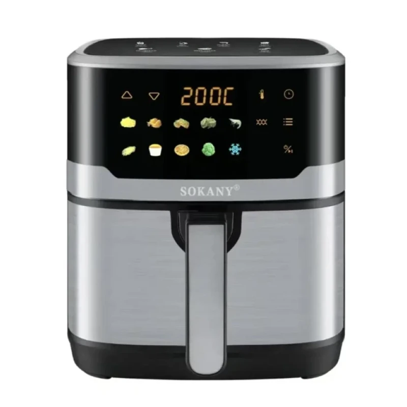 Аерогриль Sokany SK-10085 поєднує у собі функції фритюрниці, гриля, духовки та мультипічі. Завдяки потужності 2200 Вт і великому обєму чаші (7,5 л) ви можете легко готувати картоплю фрі, курячі крильця, овочі, рибу чи навіть випічку.Сенсорне керування з LED-дисплеєм дозволяє зручно встановлювати температуру від 80 до 200C і таймер до 120 хвилин, що робить пристрій універсальним для різних страв — від легких закусок до повноцінних обідів.Антипригарне покриття гарантує легке очищення, а знімна чаша та піддон підходять для миття у посудомийній машині. Технологія швидкої циркуляції гарячого повітря забезпечує рівномірне приготування, дозволяючи використовувати на 80% менше олії, ніж у традиційному смаженні.Додатково аерофритюрниця має захист від перегріву, автовимкнення після завершення процесу та стійкий корпус із нержавіючої сталі з протиковзкими ніжками.Це ідеальний вибір для тих, хто цінує здорове харчування, зручність та сучасний дизайн. ХарактеристикиМодель: Sokany SK-10085Тип: аерофритюрниця / мультипічПотужність: 2200 ВтОбєм чаші: 7,5 лТемпературний діапазон: 80200 C (плавне регулювання)Таймер: до 120 хв, автовимкненняКерування: сенсорне, LED-дисплейФункції: смаження, запікання, гриль, випікання, розігрів, захист від перегріву, звуковий сигналМатеріали: термостійкий пластик, нержавіюча сталь, антипригарне покриття чашіЖивлення: 220240 В, 50/60 ГцВага: ~5 кгКолір: нержавіюча сталь із чорними вставкамиКомплектація: аерофритюрниця, знімна корзина, піддон для олії, інструкція