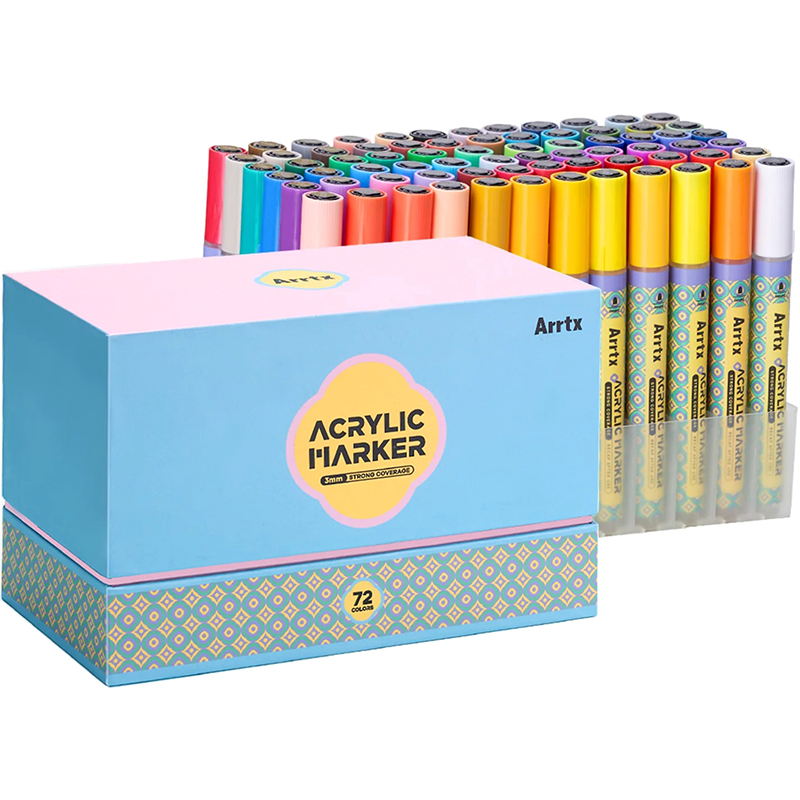 72 яскравих кольорових маркерів клапанної системи.