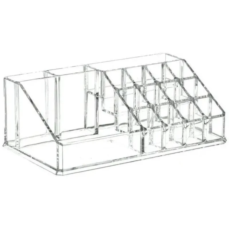 Органайзер для косметики виготовлений з міцного прозорого акрилу. Він має багатоярусну структуру, що дозволяє заощадити простір на столі, тумбочці, підвіконні, полиці або будь-якому іншому місці, куди Ви поставите органайзер. І при цьому розмістити в ньому досить багато різних предметів.