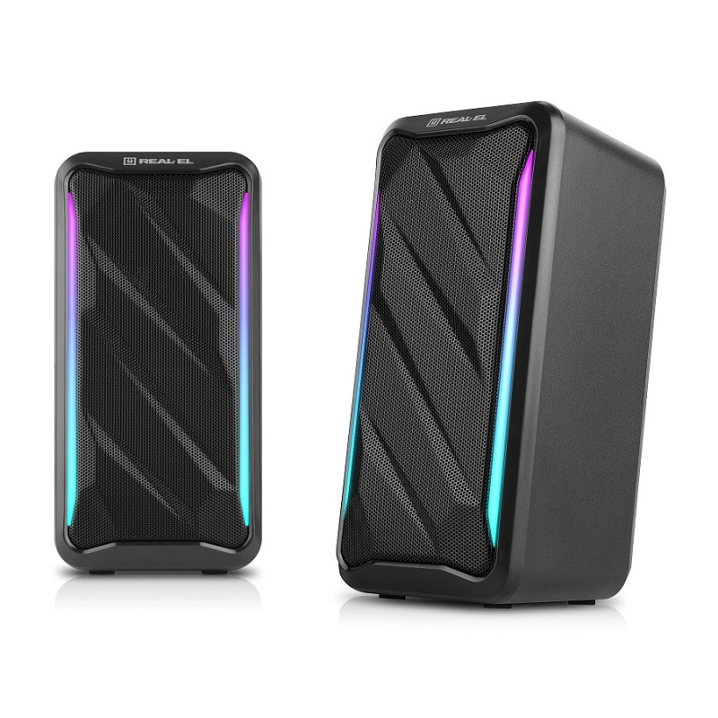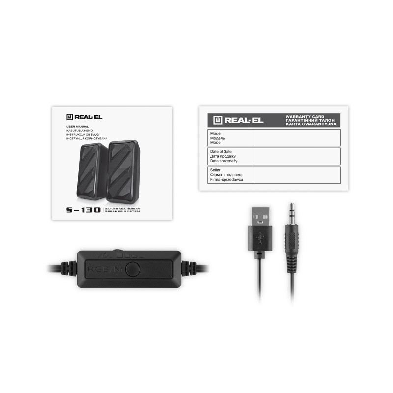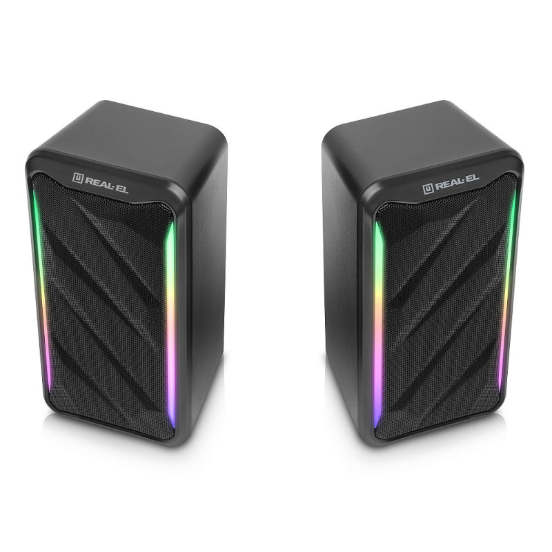 Мультимедійна акустична система REAL-EL S-130 – це легке та доступне рішення для озвучування комп’ютера чи ноутбука. АС оснащена вбудованим підсилювачем та акустичним кабелем, тому її можна швидко підключити практично до будь-яких джерел аудіосигналу. Живлення здійснюється через USB-порт ПК, ноутбука або через блок живлення 5V DC за допомогою вбудованого кабелю USB.