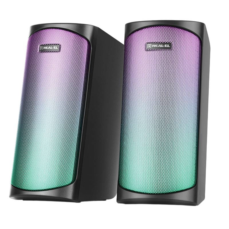 Мультимедійна акустична система REAL-EL S-135 – це легке та доступне рішення для озвучування комп’ютера чи ноутбука. АС оснащена вбудованим підсилювачем та акустичним кабелем, тому її можна швидко підключити практично до будь-яких джерел аудіосигналу. Живлення здійснюється через USB-порт ПК, ноутбука або блок живлення 5V DC за допомогою вбудованого кабелю USB.