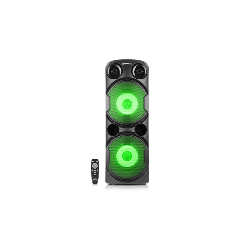 REAL-EL X-780 - це потужна 80Вт-на портативна акустична система. Вона оснащена двома динаміками 2 х O 5.7" (145 мм) + 2 х O 1.25" (32 мм), які забезпечують глибокий бас, яскраву середину та чіткі високі частоти для неймовірного захоплюючого звучання.