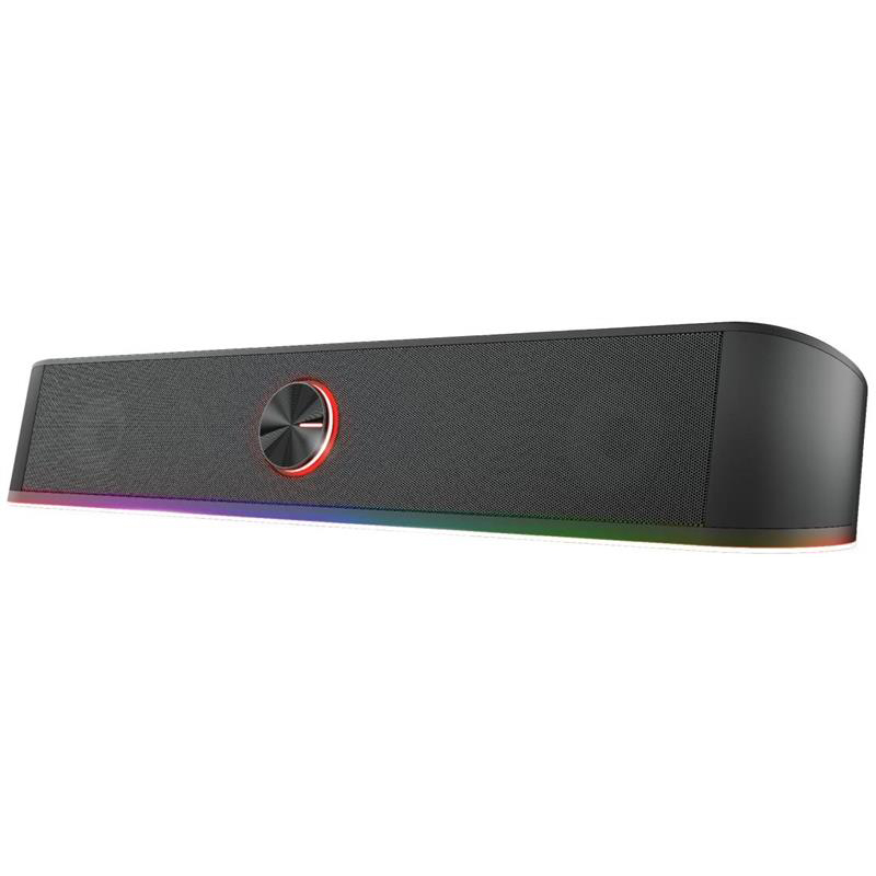Звукова стереопанель з RGB-підсвічуванням та компактною конструкцією.