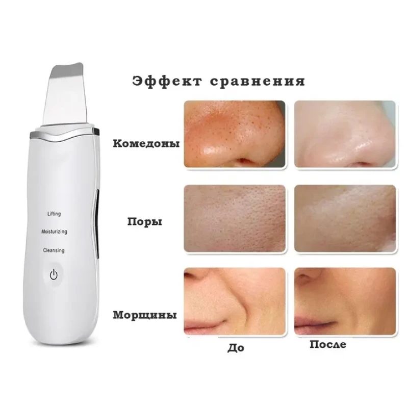 Апарат косметологами для делікатного очищення шкіри від зайвих сальних виділень, поверхневих забруднень, а також вугрів та чорних крапок. Завдяки поєднанню активної дії очищувального засобу та ультразвукових коливань відлущується верхній ороговілий шар шкіри, освітлюються пігментні плями, вирівнюється колір обличчя. Очищена шкіра має кращий доступ кисню, глибше сприймає поживні, зволожуючі та омолоджуючі засоби. Таким чином, ультразвуковий пілінг чудово готує шкіру до подальшого нанесення косметичних препаратів для ліфтингу та омолодження шкіри.