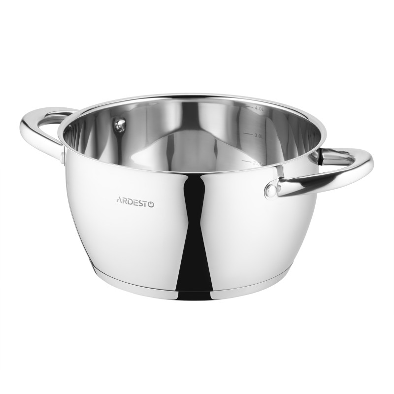 Кастрюля ARDESTO Gemini Lucca об'ємом 4,2 л – це місткий та надежний посуд для приготування великих порцій супів, рагу чи компотів. Виріб виготовлено з нержавіючої сталі, гарантуючи довговічність та безпеку. Діаметр каструлі становить 22 см, висота – 12 см, а товщина стінок – 0,5 мм та дна 2,9 мм, що забезпечує стабільне нагрівання без перегрівання окремих зон. Зі скляною кришкою з відвіром для пари забезпечено контроль процесу приготування з дотриманням температурного балансу. Мірна шкала всередині корпусу додає точності під час роботи з рідинами. Руки з нержавіючої сталі зручно лежати в руці та залишаються безпечними навіть за тривалого нагрівання. Каструля сумісна зі всіма типами плит – газовими, електричними, склокерамічними, галогенними та індукційними. Рекомендовано миття у посудомийній машині.