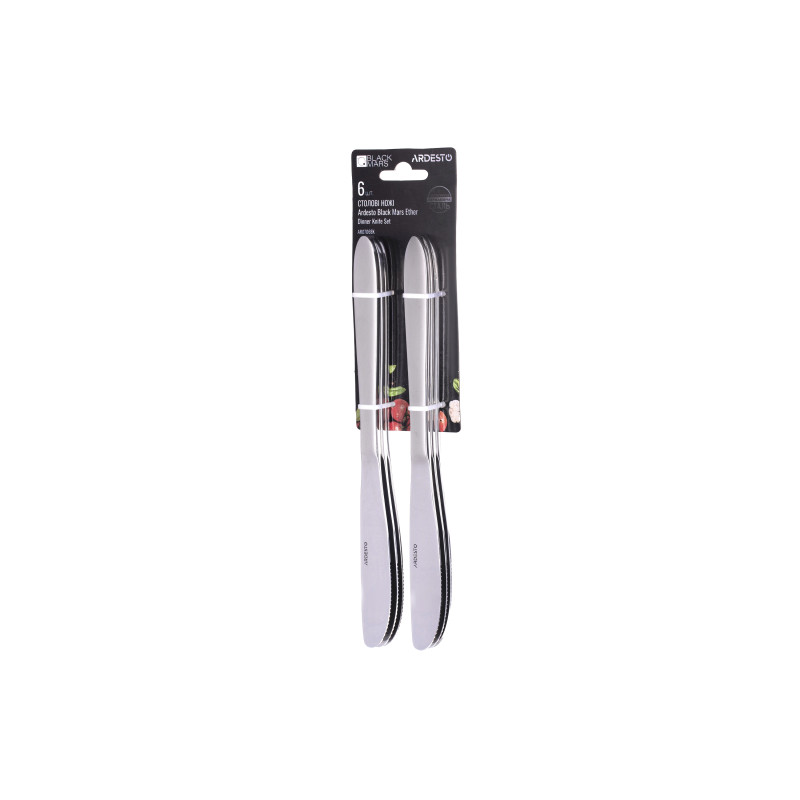 Набір столових ножів із шести предметів Black Mars Ether. Ножі виготовлені з нержавіючої сталі з зеркальною поліровкою.