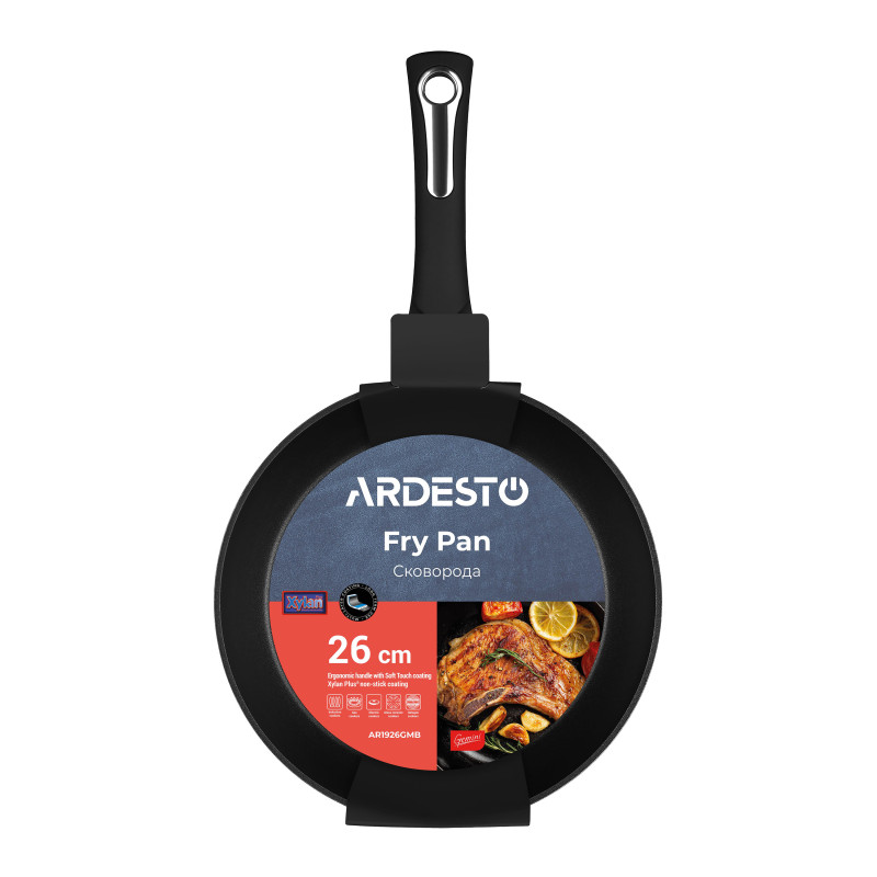 Алюмінієва сковорода чорного кольору з багатошаровим антипригарним покриттям Xylan Plus® та термостійкою бакелітовою ручкою. Сковорода Gemini сумісна з усіма видами плит.