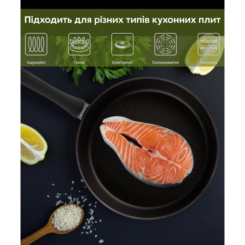 Глибока сковорода ARDESTO Black Mars вирізняється якістю корпусу з кованого алюмінію та протипригарним покриттям Megastone (3 шари). Матеріал виготовлення стійкий до деформації, не окислюється, не іржавіє не змінює смаку страв. Завдяки гарній теплопровідності та рівномірному розподілу тепла економить час приготування. Діаметр виробу чорного кольору 26 см. Ергономічне бакелітове руків’я з покриттям SOFT TOUCH не вислизне з рук і не спричинить втоми. Готувати можна на газових, електричних, склокерамічних, галогенних та індукційних плитах. Догляд не передбачає миття в посудомийній машині.