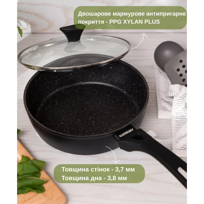 Глибоку сковороду з кришкою ARDESTO Gemini діаметром 28 см виготовлено з кованого алюмінію, який забезпечує швидке та рівномірне нагрівання. Сковороду вкрито двома шарами протипригарного покриття PPG XYLAN PLUS, тож під час приготування можна використовувати менше олії та дотримуватися здорового харчування.
