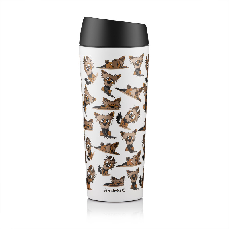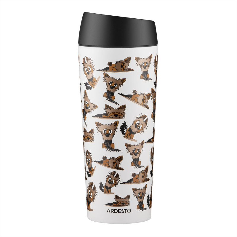 Термокухоль ARDESTO Coffee Time Yorkie об’ємом 450 мл поєднує стильний дизайн і практичність. Його виготовлено з якісної нержавіючої сталі, що забезпечує гігієнічність і тривалий термін використання. Термокухоль має ергономічний дизайн і зручний механізм відкривання – надійна кнопка-клапан. Бежевий колір і миле зображення песиків додають настрою. Виріб довго триматиме температуру: гарячого напою – 8 год, холодного – 16 год. Під час догляду бажано не мити в посудомийній машині. Із цим стильним термокухолем ARDESTO можна насолоджуватись улюбленим напоєм за будь-яких умов, літньої або зимової днини.
