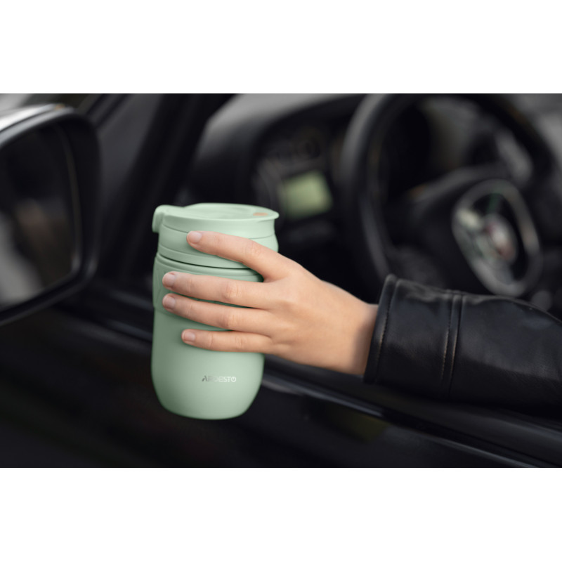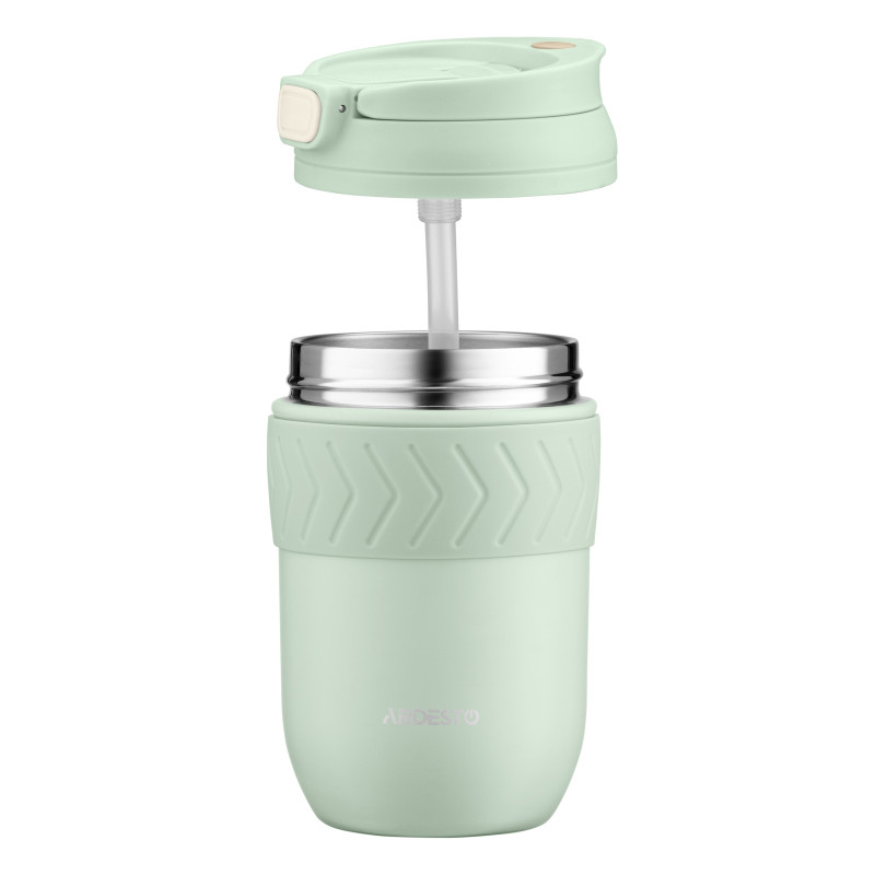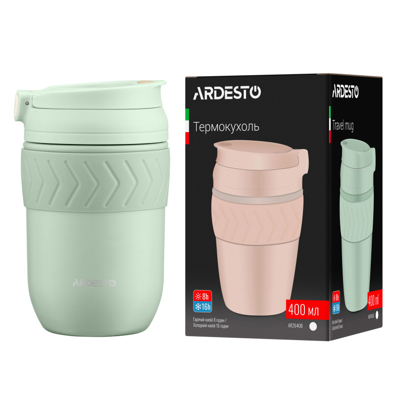 Термокухоль ARDESTO Cosy виготовлено в ергономічному дизайні з високоякісної нержавіючої сталі. Два механізми відкривання посуду – кнопка та зручна кришка-заскочка. Об’єм становить 400 мл. Термокухоль зберігає температуру гарячого напою 8 год, холодного – 16 год. Не містить BPA. Не рекомендовано мити в посудомийній машині.