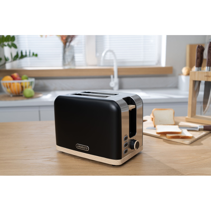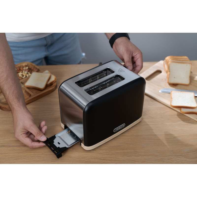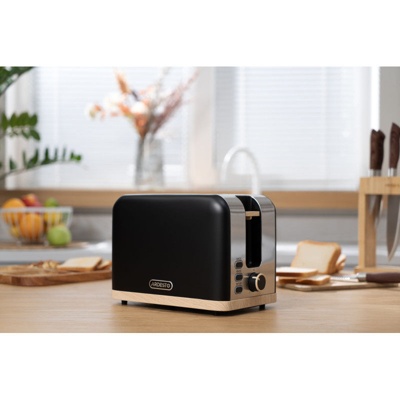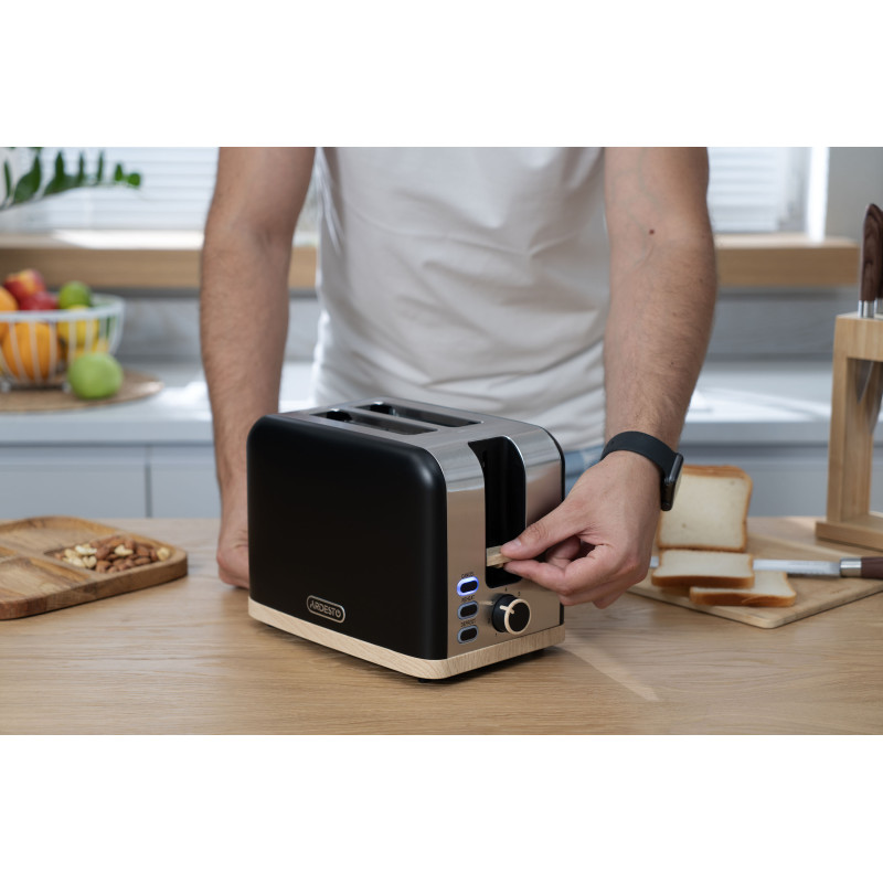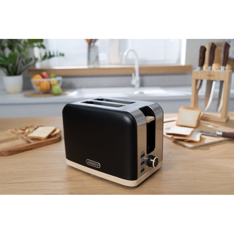 Тостер T-F420BWD потужністю 800–930 Вт надає змогу приготувати два тости одночасно. Широкі слоти з автоматичним центруванням гарантують рівномірне обсмажування скибок будь-якої товщини. До того ж передбачено регулювання ступеню смаження (7 рівнів). Функції підігрівання і розморожування додають зручності, адже можна швидко розморозити та підігріти смаколики прямо з морозильної камери.