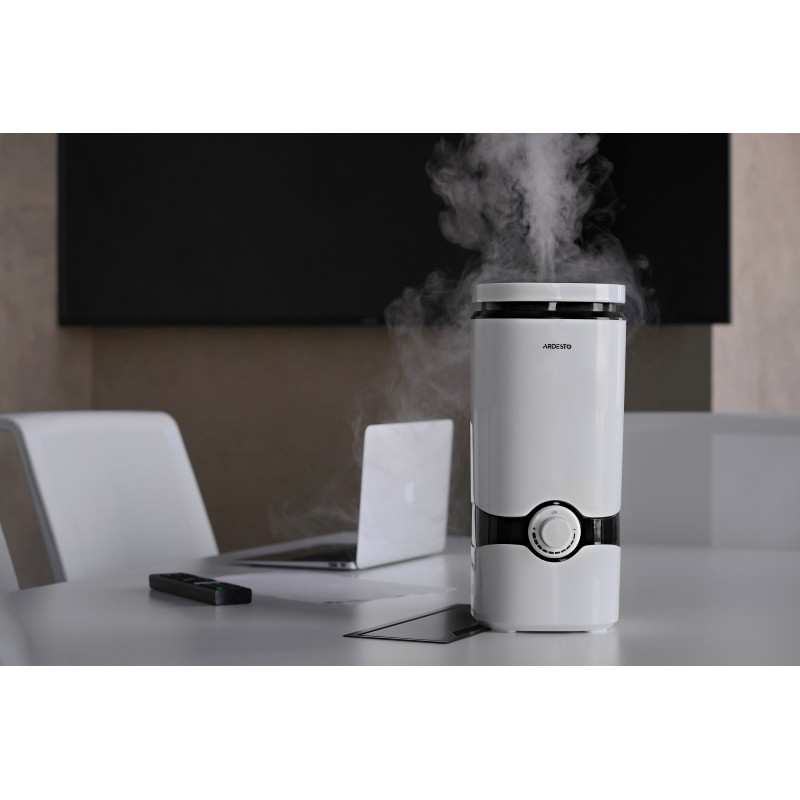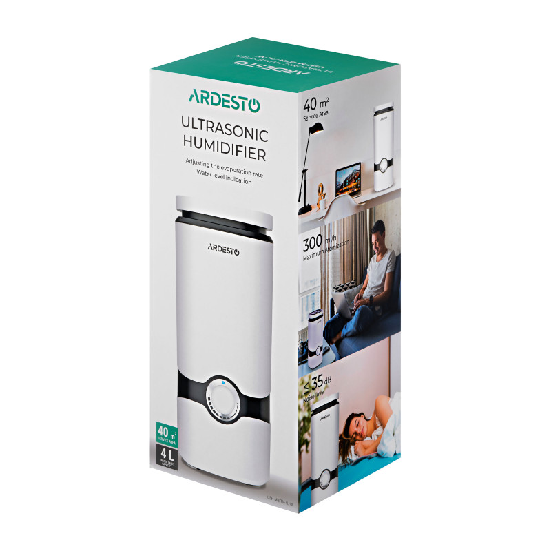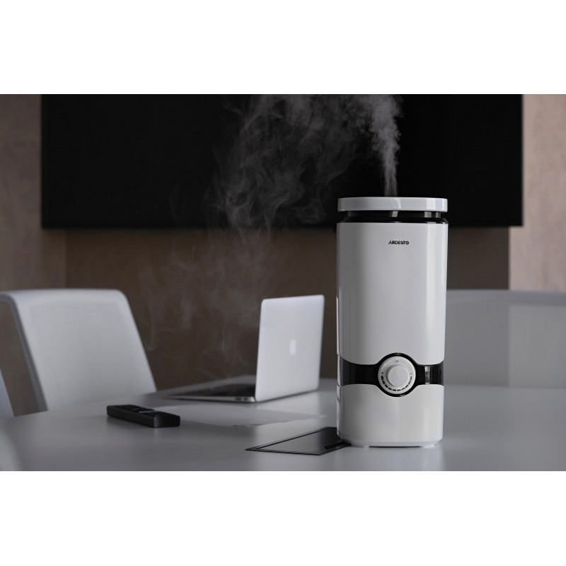 Ультразвуковий зволожувач повітря з пультом ДУ, автоматичним регулюванням інтенсивності випаровування, безшумною роботою, резервуаром на 4 літри, та ергономічною конструкцією з верхнім заливом води.