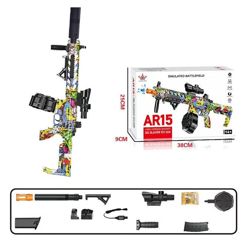 Використовує гідрогелеві кульки (орбізи), які набухають у воді та стають м'якими, що робить їх безпечними для використання в іграх