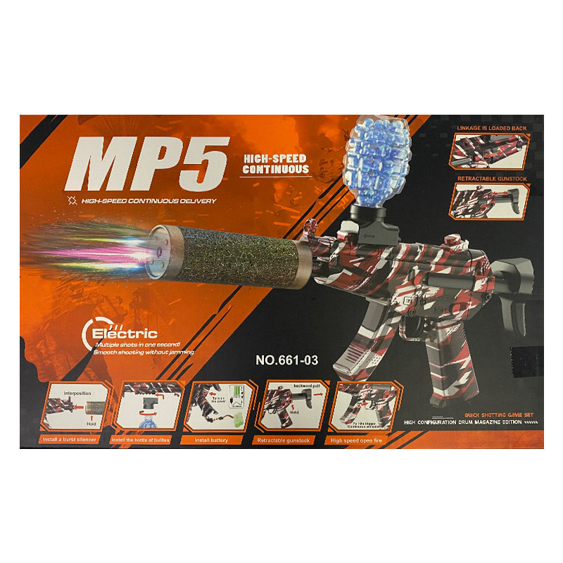 Використовує гідрогелеві кульки (орбізи), які набухають у воді та стають м'якими, що робить їх безпечними для використання в іграх
