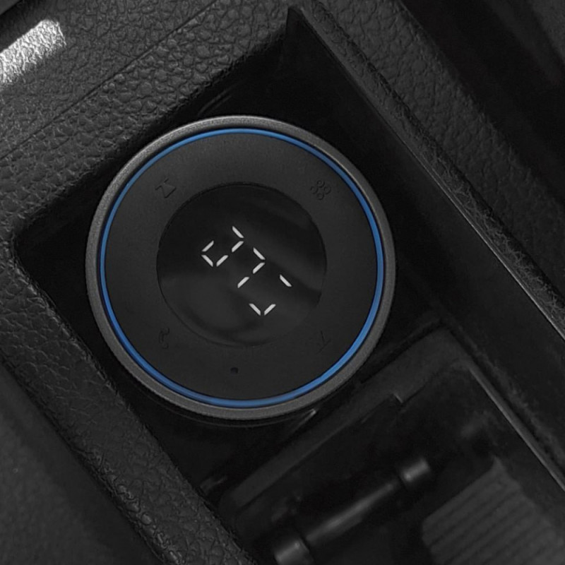 Пристрій оснащений FM-передавачем, який дозволяє відтворювати музику з вашого смартфона, USB-накопичувача або TF-карти на аудіосистемі вашої машини. Виберіть вільну радіочастоту і встановіть таку ж на пристрої.