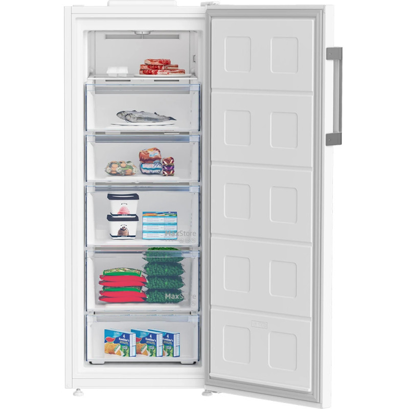 Морозильна камера Beko B1RFNE274W об'ємом 220 л і однодверним виконанням - зручне рішення для зберігання продуктів тривалу годину. Компактні габарити (152×60×71 см) дозволяють зручно розмістити її навіть у невеликій кухні чи коморі. Клас енергоефективності E + функція NF гарантують оптимальне енергоспоживання та стабільне збереження температури. Вона стане надійним помічником для батьківщини або малого будинку.