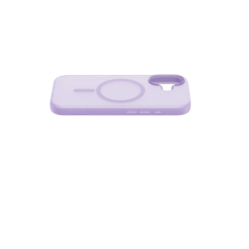 Belkin Grip Series для iPhone 17 (MSA034HQLV, Lavender) - нижній магнітний чохол у лавандовому відтінку з протиковзною текстурою, захистом від падінь до 2 м і повною сумісністю з MagSafe. Тонкий корпус із TPU (з перероблених матеріалів), вигнуті краї, поліровані кнопки та напівпрозоре покриття з м'яким фінішем. Ідеальний баланс естетики, комфорту та надійності — для тих, хто хоче стильної та екологічної захисту.