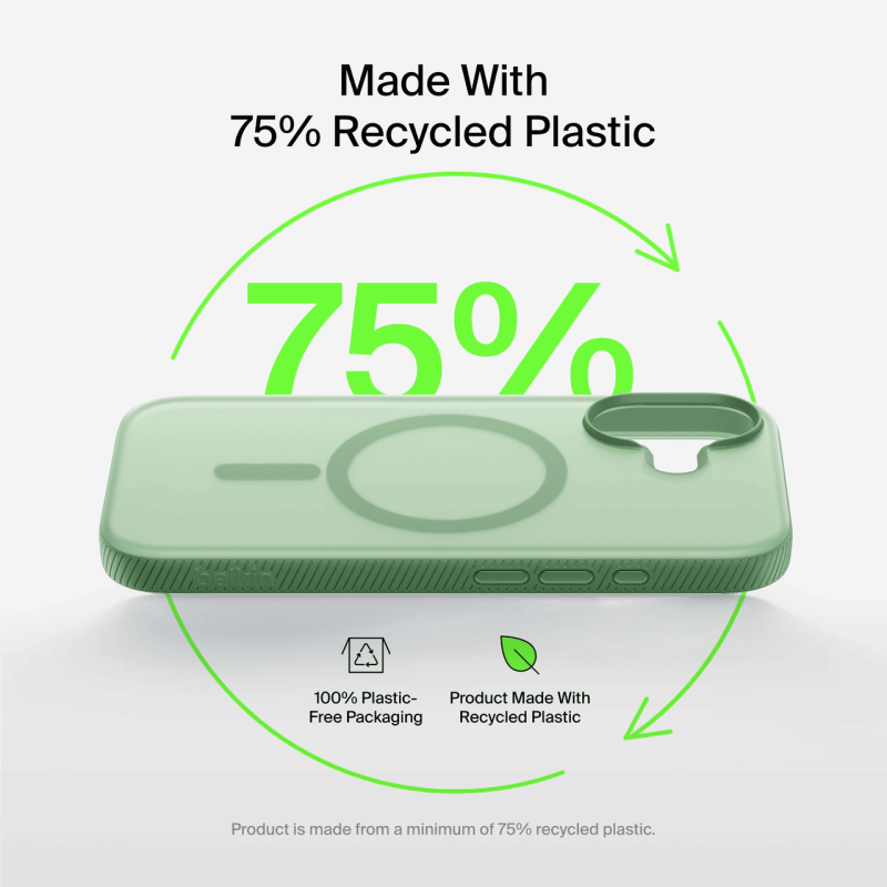 Чохол Belkin Grip Series для iPhone 17 (MSA034HQSE, Sage) — стильний захист із протиковзною текстурою, сумісністю з MagSafe і захистом від падінь до 2 м. Ідеальний для тих, хто цінує естетику та надійність.
