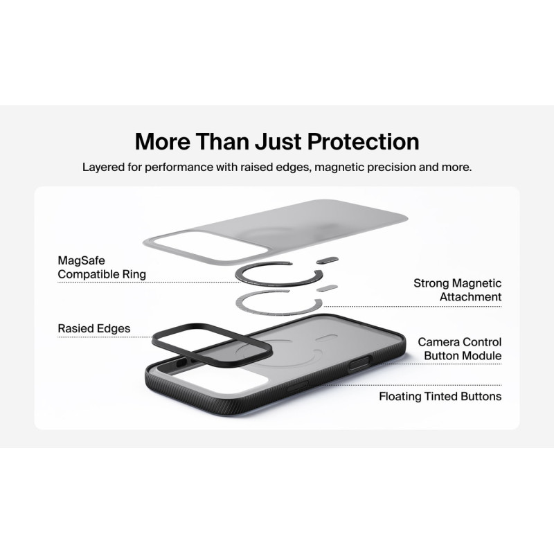 Belkin Grip для iPhone 17 Pro Max (MSA036HQBK, Black) — класичний магнітний чохол у кольорі Black (чорний) з протиковзною текстурою, захистом від падінь до 2 м і повною сумісністю з MagSafe. Тонкий корпус із TPU (з перероблених матеріалів), вигнуті краї, поліровані кнопки та напівпрозоре покриття з м'яким фінішем. Універсальний чорний — ідеальний вибір для мінімалізму та надійності.