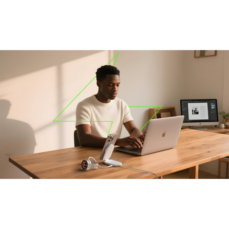 Заряджайте два пристрої одночасно швидко та безпечно завдяки сертифікованій технології Qi2 25 Вт. За 29 хв iPhone заряджається від 0 до 50 %, а AirPods отримують бездротове живлення до 5 Вт. Додатково вбудований USB-C порт 5 Вт дає змогу зарядити смартчаси. Технологія ChillBoost з пасивним охолодженням знижує нагрівання під час швидкого заряджання, зберігаючи оптимальний стан батареї. А завдяки складному, легкому та портативному дизайну зарядну станцію зручно брати з собою – вона перетворює будь-яку поверхню на зарядний хаб.