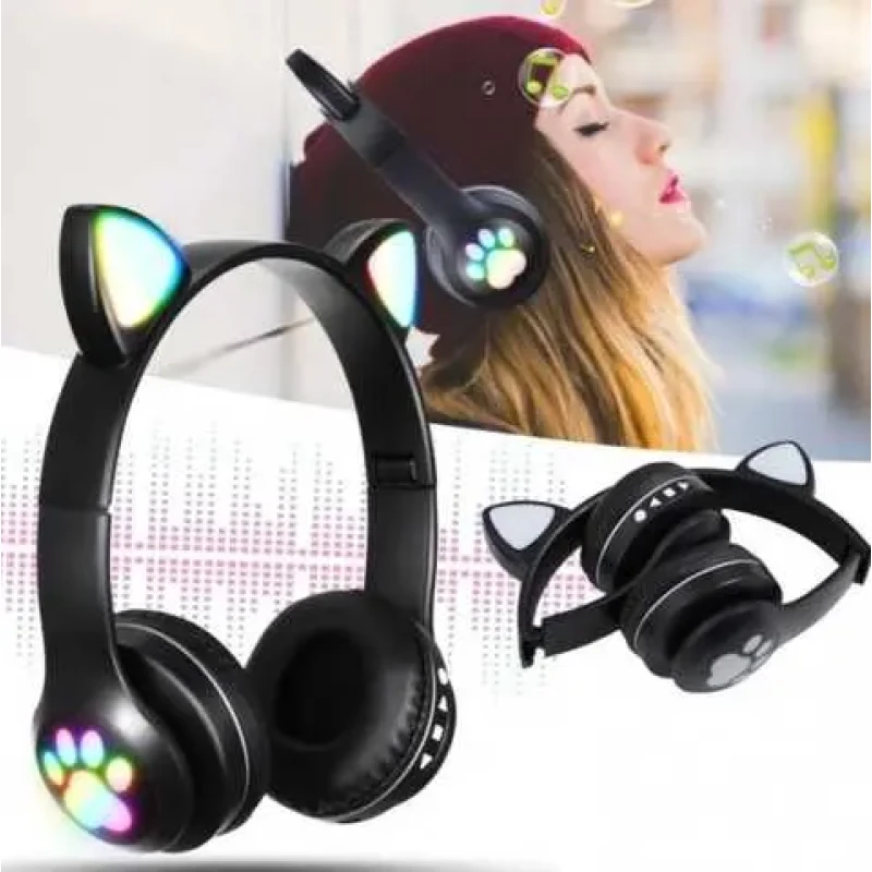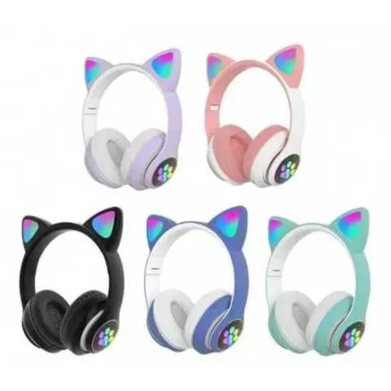 Безпровідні дитячі MP3 Навушники з Вушками з підсвічуванням + підтримка MicroSD з FM-Радіо Cat Ear STN-28 Bluetooth