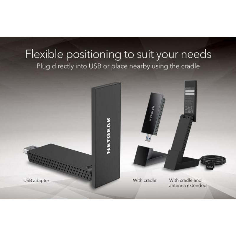 Адаптер WiFi розміщується в компактній підставці, що дозволяє гнучко розміщувати його всередині та навколо комп’ютера.