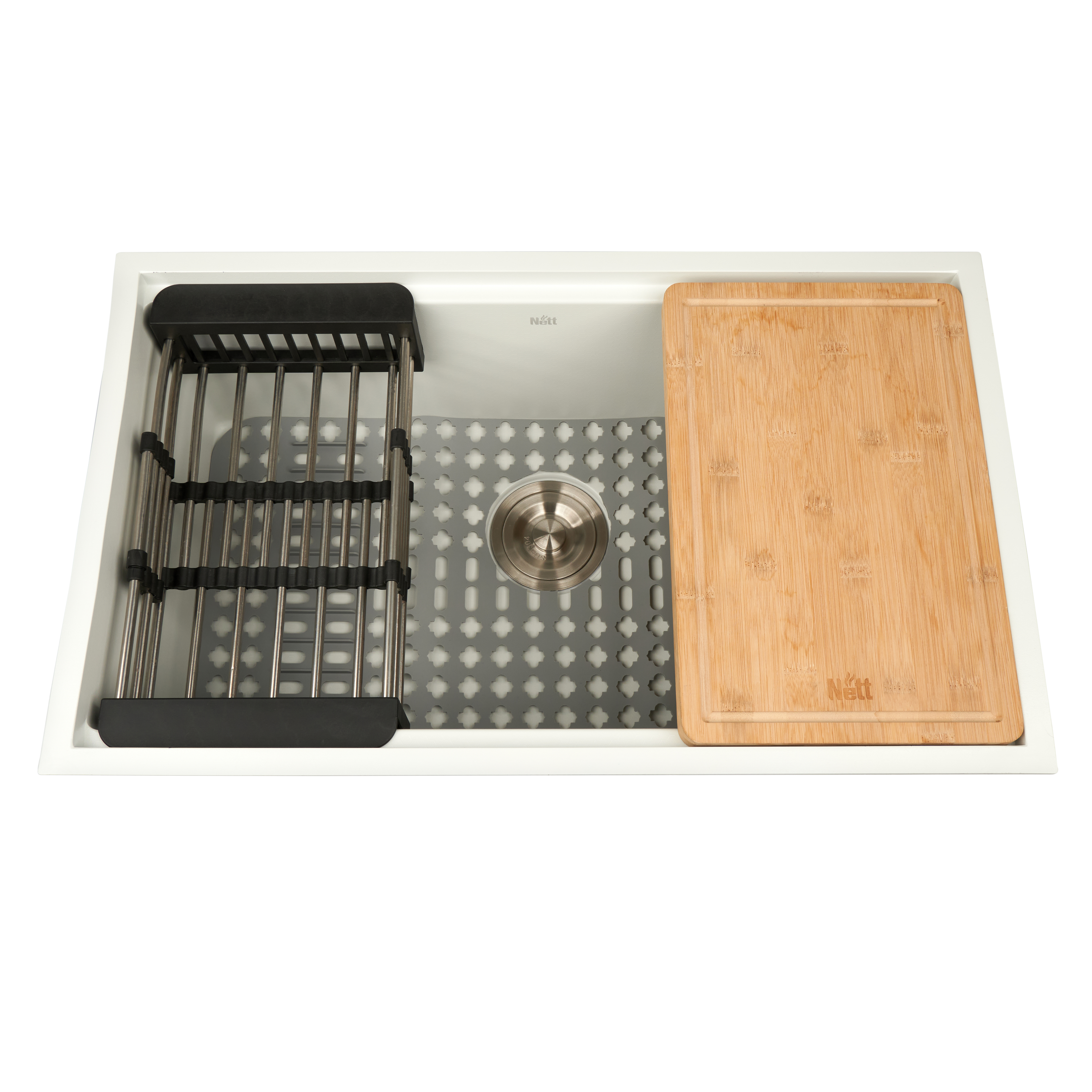 Елегантна біла раковина виготовлена з високоякісної нержавіючої сталі AISI 304, що забезпечує надійність та тривалий термін служби виробу.