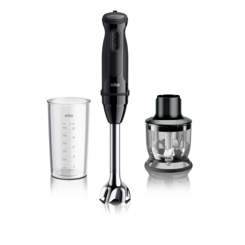 Braun MQ30.201.MBK — це сучасний занурювальний блендер, створений для швидкого й комфортного приготування улюблених страв. Завдяки потужності 900 Вт пристрій легко справляється навіть із твердими інгредієнтами, дозволяючи швидко подрібнити овочі, приготувати крем-супи, смузі або соуси.Ергономічна форма ручки забезпечує зручність під час тривалого використання, а стильний чорний дизайн впишеться у будь-яку кухню. У комплекті передбачений контейнер для подрібнення, що робить використання блендера ще практичнішим.Основні переваги:Висока потужність 900 Вт — швидке й рівномірне подрібнення.Компактний та ергономічний дизайн у чорному кольорі.Універсальність — підходить для приготування соусів, смузі, крем-супів, пюре та подрібнення овочів.Насадки та контейнер у комплекті — готове рішення для щоденного використання. Характеристики Braun MQ30.201.MBKТип: занурювальний блендерПотужність: 900 ВтКолір: чорнийФункції: подрібнення, змішуванняАксесуари: контейнер, насадка для подрібненняКатегорія: ручні блендериВиробник: Braun Braun MQ30.201.MBK — потужний і зручний занурювальний блендер, який стане вашим надійним помічником для щоденного приготування страв.