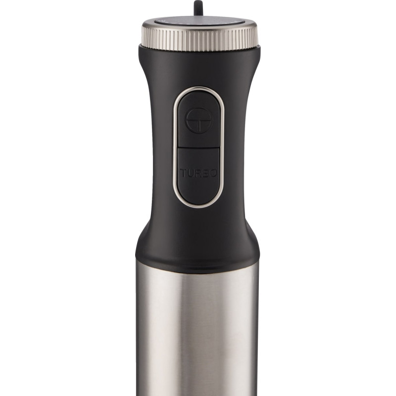Блендер із неіржавкої сталі з потужним лезом, виконаний в елегантному дизайні, дасть змогу вписати цей ручний блендер у будь-яку кухню. Ергономічна ручка забезпечить вам зручне захоплення, і ви будете насолоджуватися змішуванням продуктів.