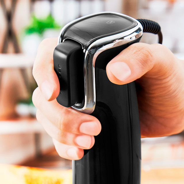 Більше немає необхідності припиняти змішування кожного разу, коли потрібно обрати нову швидкість для страви. Багатошвидкісний тригер дозволить гнучко керувати потужністю, просто змінюючи силу натискання на кожному етапі обробки продуктів. Ще легше, ще ефективніше!