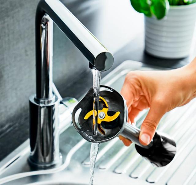 Коли закінчили обробку, просто від'єднайте насадку і промийте водою або завантажте в посудомийну машину, забувши про виснажливий догляд. Приступаючи до нової обробки, достатньо зафіксувати аксесуар та відразу починати подрібнення.