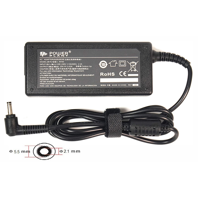 Назва: Блок живлення для ноутбуків PowerPlant ACER 220V, 19V 65W 3.42A (5.5*2.1)