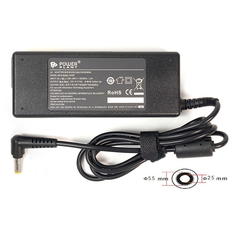Назва: Блок живлення для ноутбуків PowerPlant ASUS 220V, 19V 90W 4.74A (5.5*2.5)