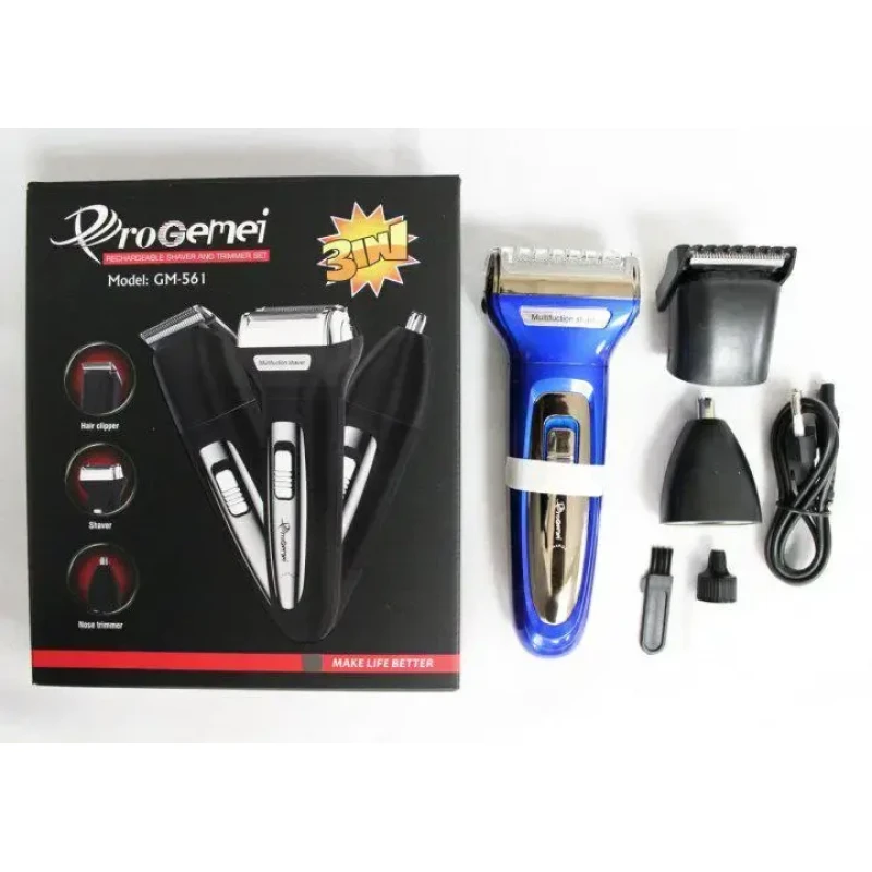 Тример Gemei GM-561 3 в 1 ― це акумуляторний багатофункціональний прилад для догляду за волоссям на обличчі, з трьома насадками: