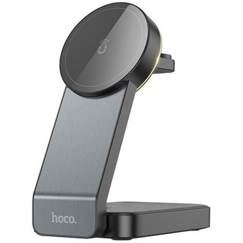 Hoco CQ3 оснащений спеціальною підставкою для смартфонів, а також окремими зонами для бездротових навушників і Apple Watch. Завдяки цьому ви отримуєте максимально зручний та впорядкований процес зарядки. Додаткове LED-підсвічування додає стильності пристрою та полегшує його використання в темний час доби.