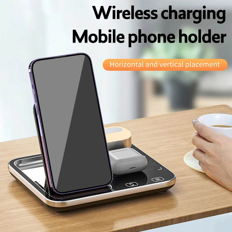 Цей пристрій пропонує бездротову зарядку для вашого смартфона, навушників і навіть годинників, забезпечуючи їх надійне живлення без зайвих дротів та занепокоєнь.
