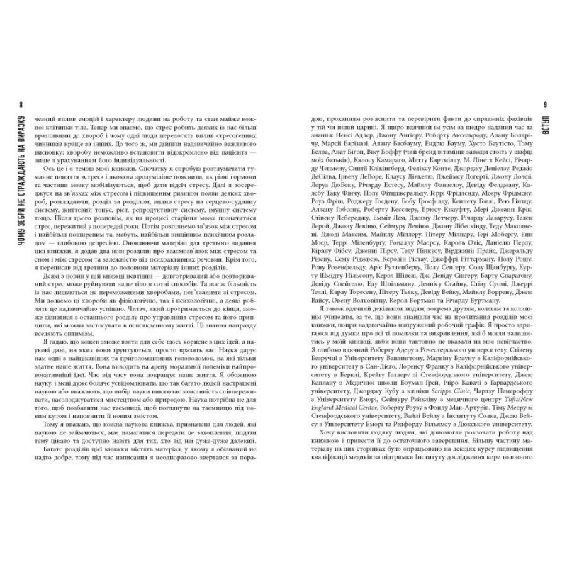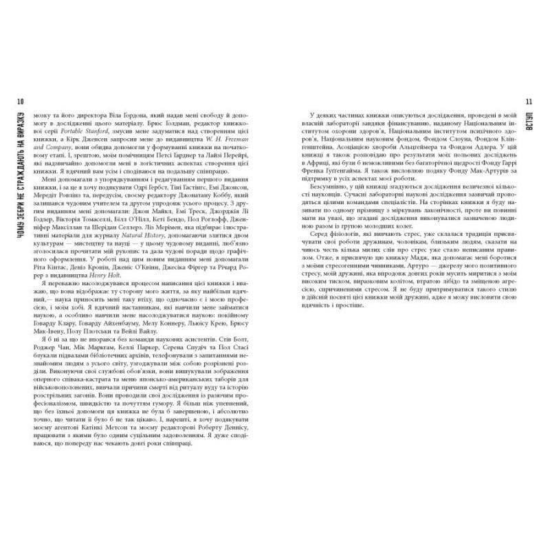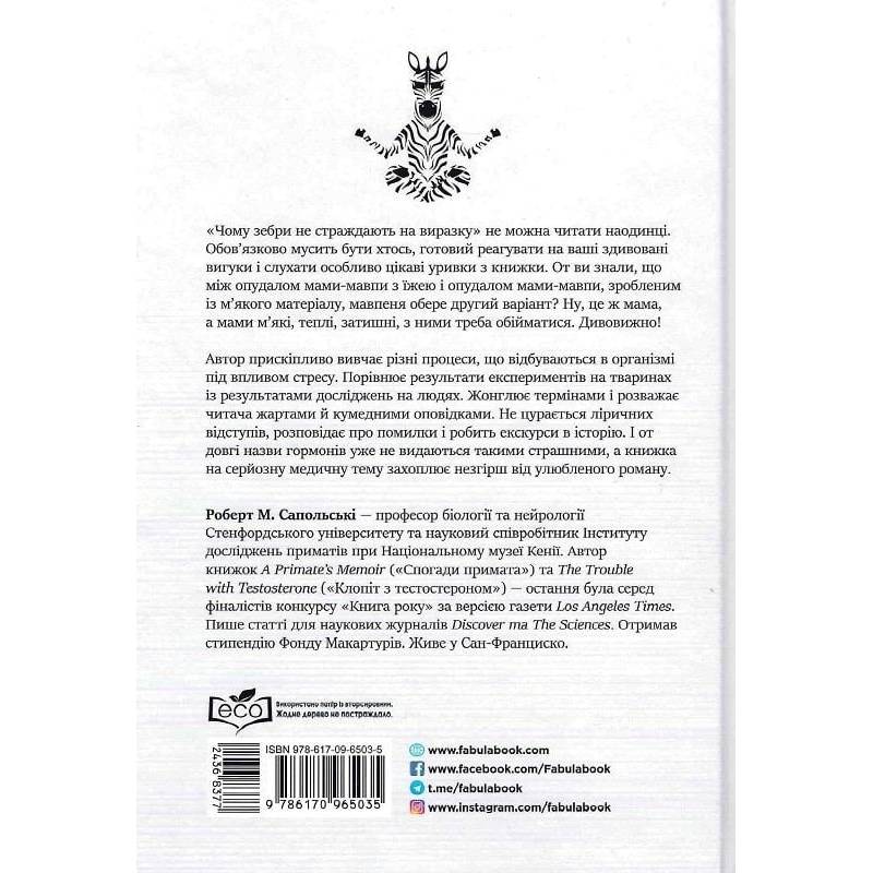 Усі хвороби — від стресу. Чули таке? Роберт Сапольські, професор біології та нейрології Стенфордського університету, вирішив це перевірити. У цій книжці зібрані результати багатьох досліджень, виконаних вченими з різних галузей. Стрес і реакція організму на нього залежить від безлічі чинників, наприклад, від того, що їла ваша мама під час вагітності. Серйозну тему авторові вдалося подати без зайвої академічності, а терміни з’являються лише там, де це конче необхідно. Це корисна книжка для тих, хто прагне краще розуміти себе і своє тіло, але не хоче витрачати час на боротьбу зі спеціальною літературою. Зрештою, легкий стиль пана Сапольські робить читання напрочуд приємним.