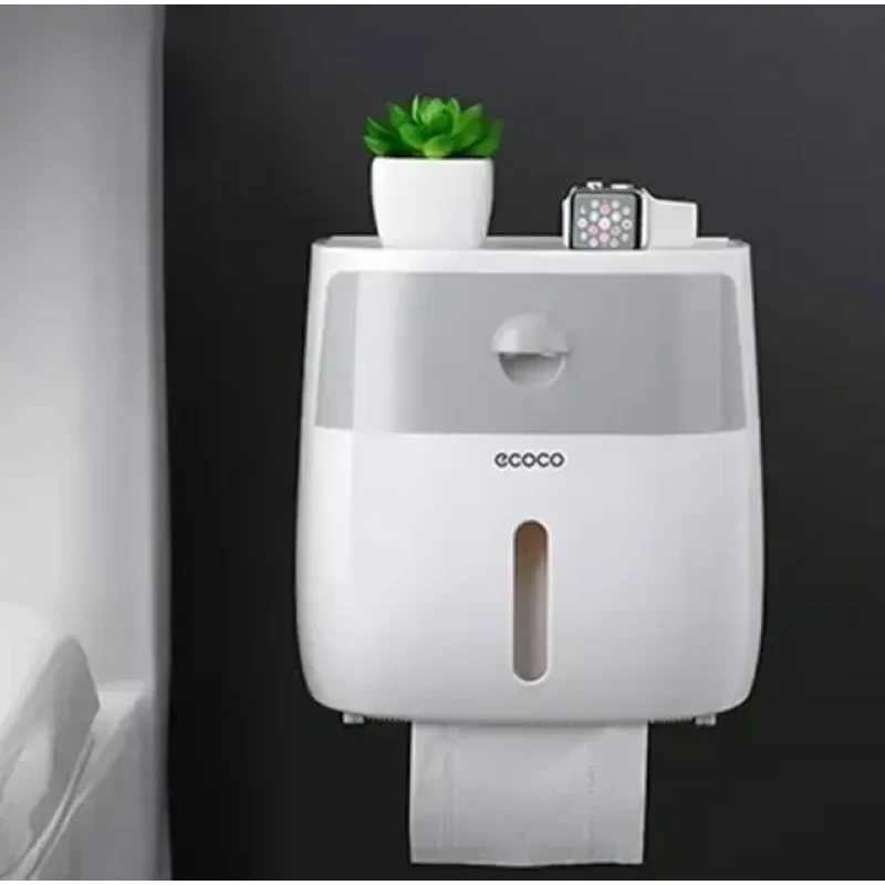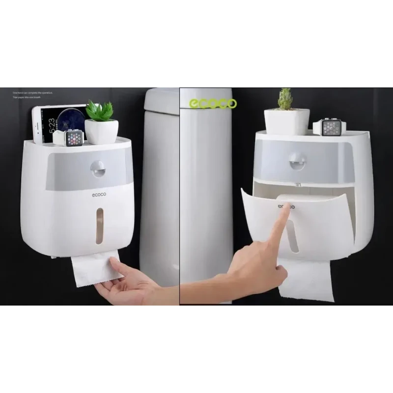 Тримач туалетного паперу та серветок ECOCO з ящиком та тримачем для телефону – це багатофункціональний тримач для туалетного паперу або рушників для ванної кімнати.