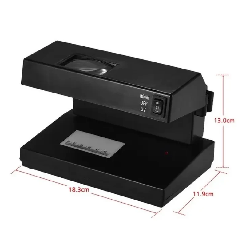 Ультрафіолетова лампа детектор валют AD-2138 добре зарекомендувала себе в банках, бухгалтеріях, дрібних та великих офісах, пунктах обміну, ресторанах, а також на багатьох заправних станціях. Режим ультрафіолетового світіння допоможе ефективно відстежити підозрілі банкноти, а головне убезпечити себе від шахрайських дій. Пристрій працює від мережі. Здійснюється перевірка трьома способами: Ультрафіолетовий колір перевірить усі водяні знаки. Оптична лінза розгляне маленькі знаки на купюрах. Біле світло проведе аналіз особливостей поліграфічного захисту.