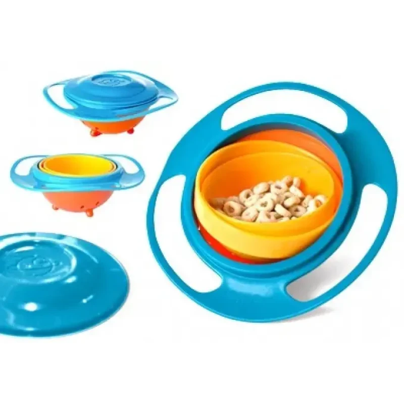 Тарілка-непроливайка - цікава та незвичайна річ, яка сподобається кожній дитині! Усередині «Universal Gyro Bowl» розташована спеціальна внутрішня чаша, яка обертається на 360 ° і при цьому завжди зберігає горизонтальне положення, тому пролити або розсипати що-небудь з тарілки буде просто неможливо. При всій активності малюка, шанс влаштувати безлад під час їди буде мінімальний! Тепер Вам не потрібно хвилюватися, що дитина може забруднити дорогі речі, килим, меблі або навіть салон автомобіля.