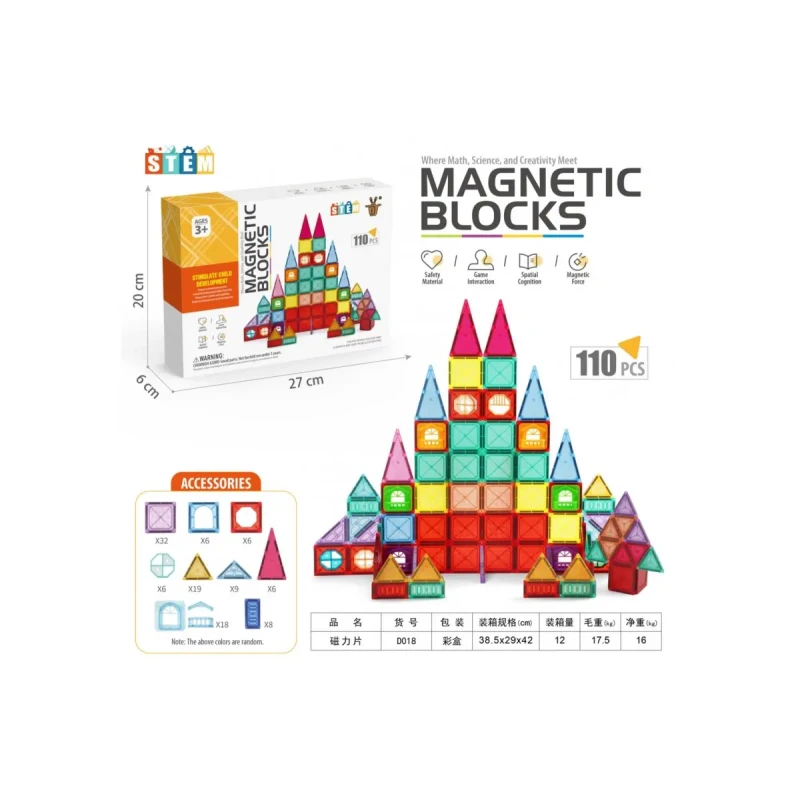 Дитячий конструктор D018, магнітні блоки 110 деталей
