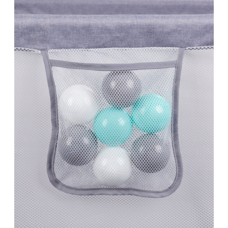 Манеж має зручну блискавку для легкого відкриття та закриття дверцят. Додатковий кошик для ігор з м'ячами збільшує ігрові можливості дитини, що робить манеж ідеальним для різноманітних занять.